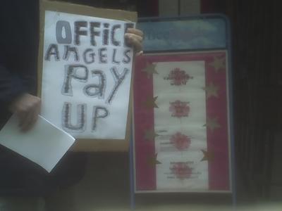 Manchester SF picketted Office Angels on New Market, Mancheter city centre on Thursday May 12 as part of SF’s national week of action against the Office Angels agency in a dispute over unpaid wages. Although management were unavailable for discussion, there was a pre-prepared OA statement branding our campaign of “direct action” as lies and, of course, painting themselves purer than pure when it comes to treatment of temporary workers. As elsewhere, we had comments from passers-by, some of whom have had dealings with OA and other temping agencies. We will be back during the upcoming international week of action against OA – for further details, please get in touch.