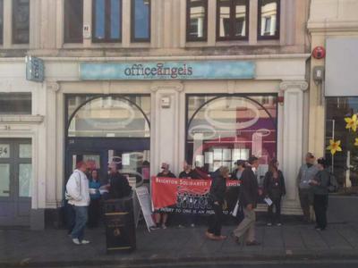 Brighton SolFed today answered the call for solidarity from South London SolFed, who have been organising pickets against employment agency Office Angels over a non-payment dispute at their Wimbledon branch. Dan worked for Office Angels for three days in December of last year. He was assured by the company that the lack of a time-sheet would 'not be a problem'. However, Office Angels are refusing to pay him the wages he is owed - falsely claiming he only worked for one day, despite them having called him at work on his third day. After completely ripping him off, they had the nerve to harass him for seeking advice on an internet discussion forum. We picketed for several hours in the afternoon and distributed several hundred leaflets, running out prematurely as we clearly underestimated demand. Whilst passers-by were happy to take leaflets, the local management were less than pleased, with one complaining about a loss of business and another attempting to debate the finer points of employment law. On that subject, one of the most basic aspects of employment law is paying your employees for the time they work.
