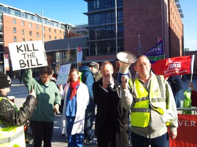 Liverpool. Keep Our NHS Public held a protest outside the venue, the BT